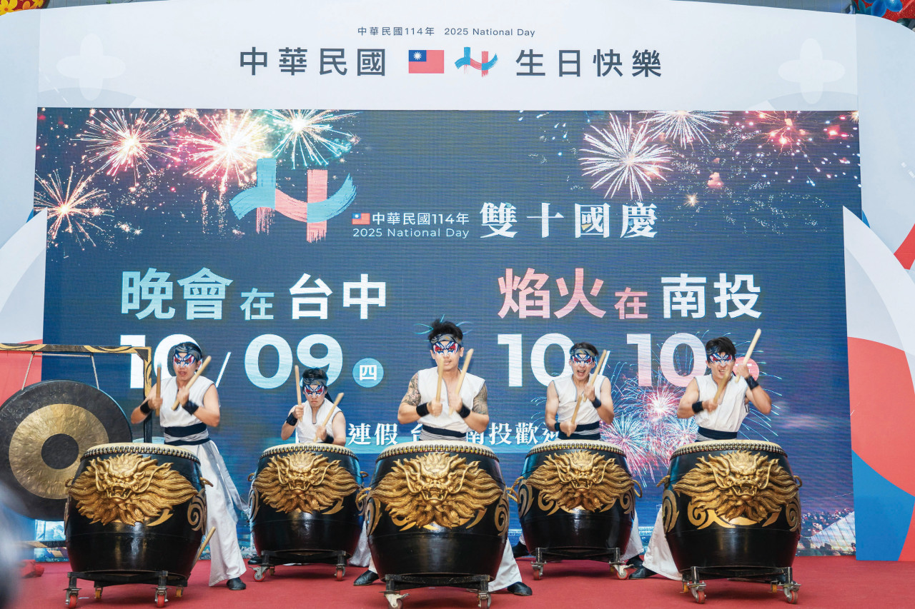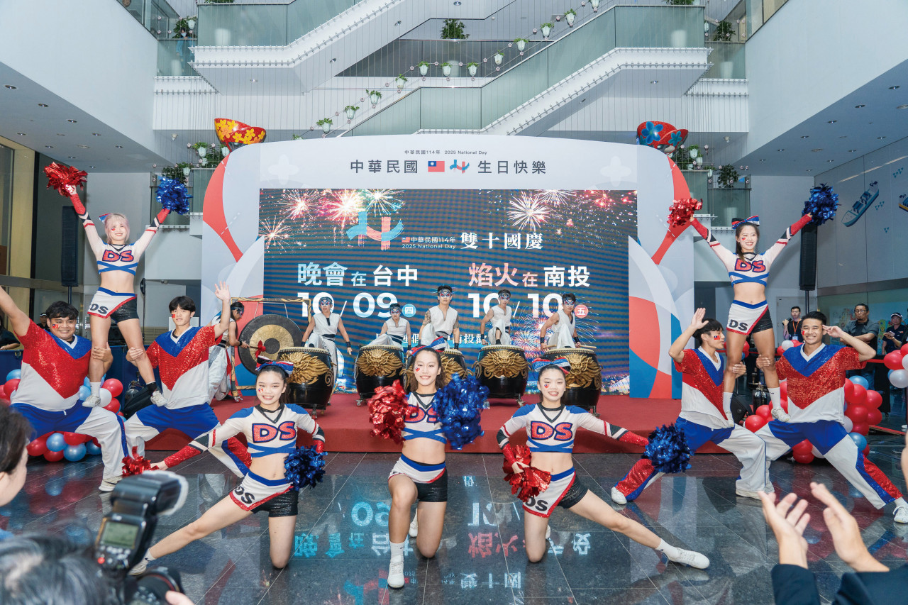 九天民俗技藝團和台中冠軍啦啦隊也帶來精彩表演,邀請全民共同參與國慶盛事。