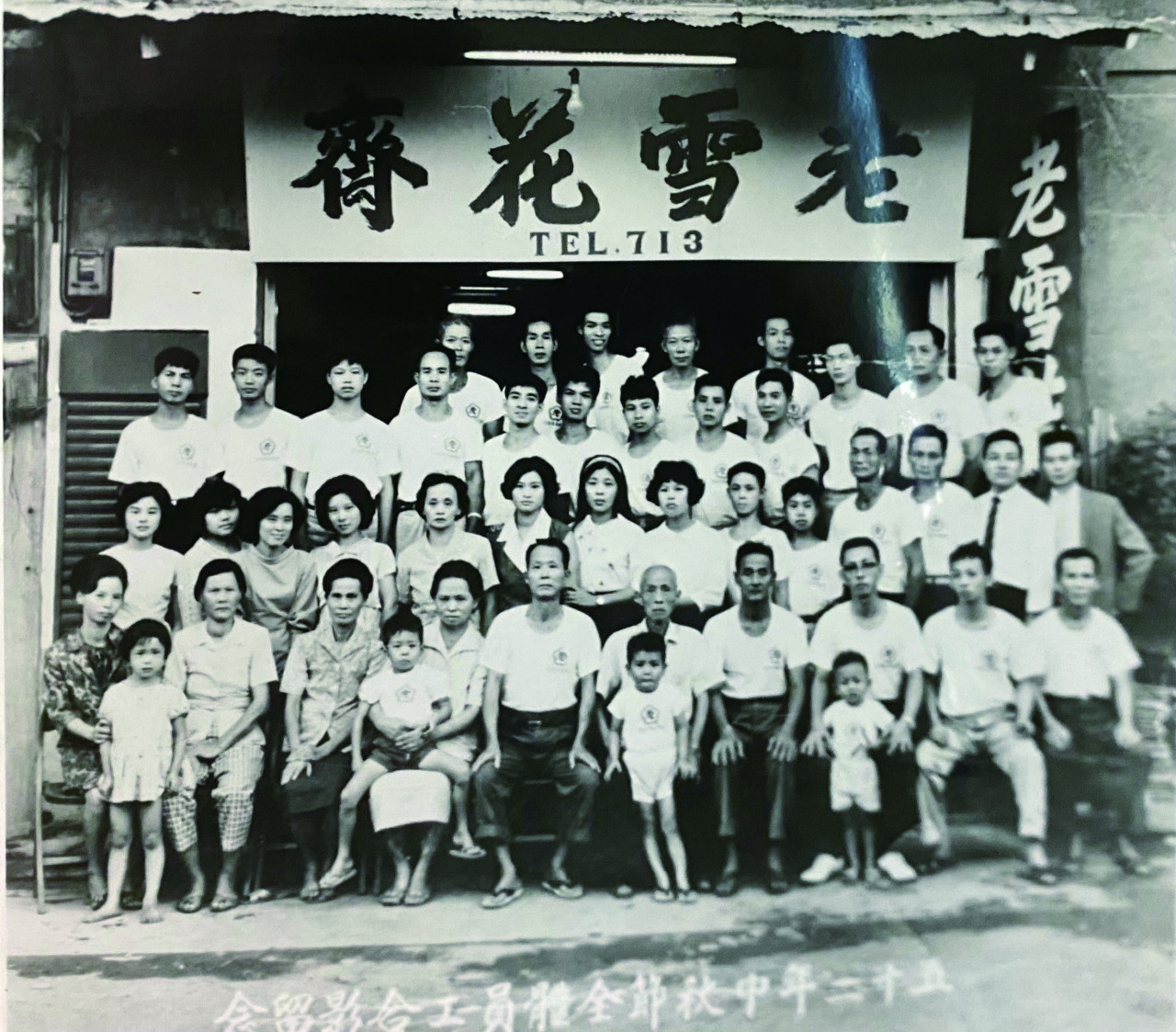 今年84歲、老雪花齋第二代經營者呂松吉透露,這個名字背後有段精彩故事,當時陳德全邀來6位秀才為餅店取名,只聽眾人吟詠「花香天下中秋桂,雪映莊前臘月梅」,原先要以字尾的「桂」和「梅」,取名「桂梅齋」,隱喻呂水刻苦耐勞,正當眾人陶醉之際,卻又感嘆台灣未能見到下雪美景,此時書法名家劉曉邨神來一筆,取字首的「雪」和「花」,當場揮毫「雪花齋」,店名就此拍板定案。
