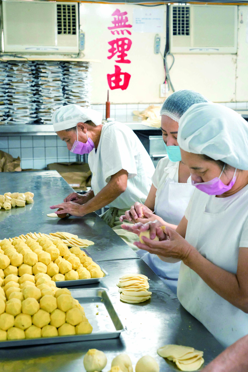此外,老雪花齋的糕餅製作方式也與時俱進。呂松吉表示,由於每到中秋檔期訂單常暴增、人力吃緊,於是他早在50年前便陸續投入研發自動化機器取代人工,他興奮地展示機器說,「這些都是我設計的!」如今機器已進化到第六代,可一條龍作業,解決訂單爆量問題。