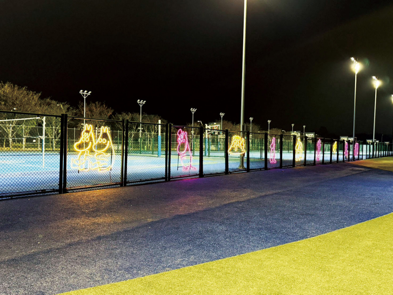 中央球場 姆明愛運動主題立牌與互動燈光裝置
