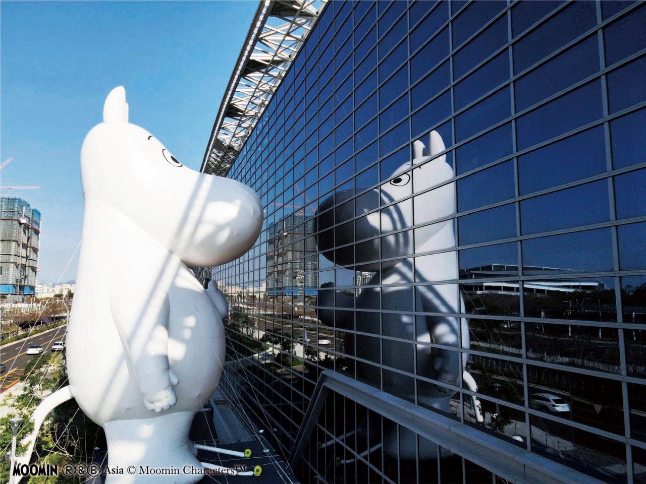 引人注目的還有台中國際會展中心外的超大型姆明,高達20公尺的姆明面向建築物,彷彿照鏡子一般,逗趣設計吸引大批民眾拍照,還戲稱姆明好像「面壁思過」,台中國際會展中心也特別配合展覽檔期開放四樓,讓民眾入館與姆明相見,面對面滿足粉絲的好奇心。