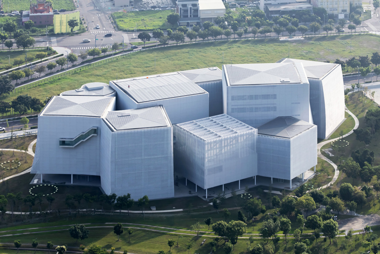 踏入中央公園北側,就能看到由普立茲克建築獎得主SANAA事務所——妹島和世與西澤立衛操刀的「台中綠美圖」,外觀以8棟純白色方塊量體組成,不僅是臺中市立美術館與圖書館共構的新地標,更是一座模糊了城市、生態與藝術邊界的文化森林。建築師利用通透視野,讓陽光透過細緻的金屬擴張網灑落室內,讓觀展者穿梭於展覽空間與書架間,能隨時與窗外的公園地景對話,體現「藝術即生活」的建築本質。