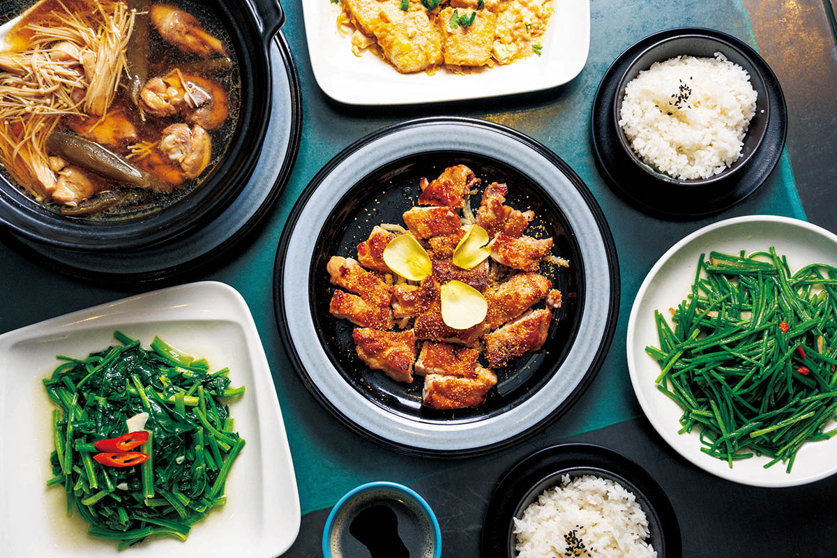 每桌必點的天使雞腿酥脆多汁,炒水蓮則為在地有機友善栽種,展現單純的自然原味。