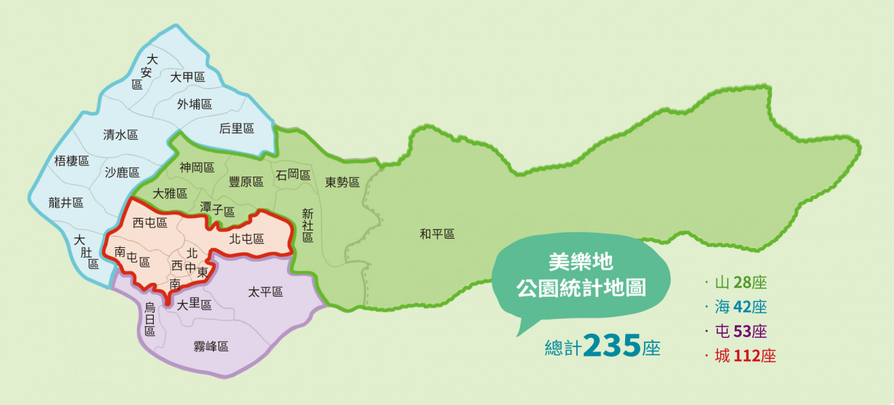 清晨,長輩在公園步道悠閒漫步;午後,孩童笑聲在遊戲場迴盪;傍晚,下班後的市民在綠意環繞下慢跑紓壓,這是台中市民的生活日常。
