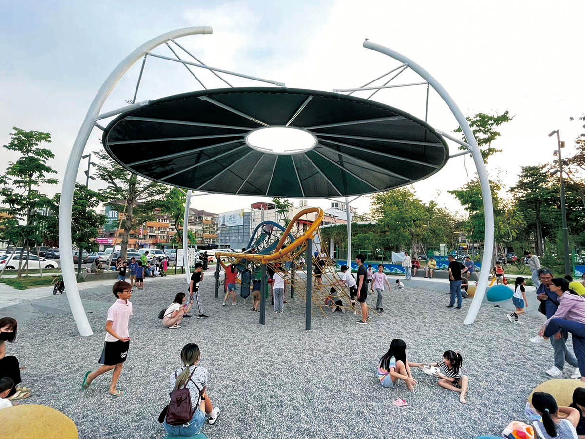 東區十全公園大面積的遮陽設施,提供全天候友善的遊憩環境。