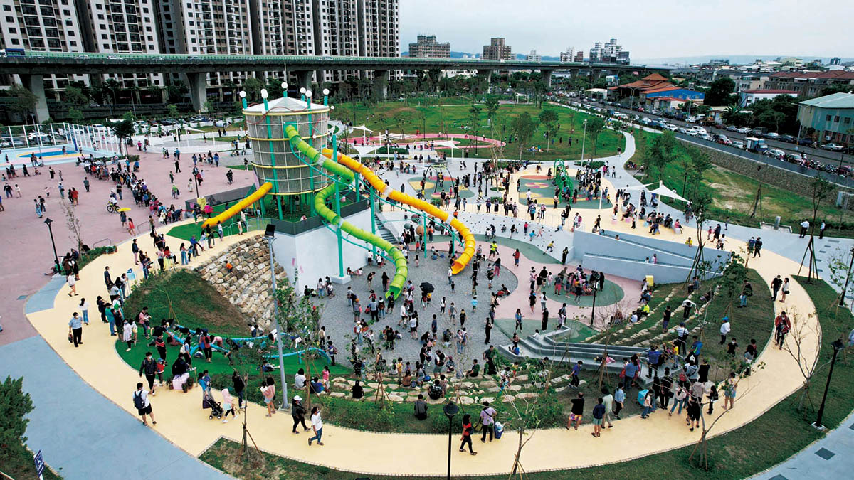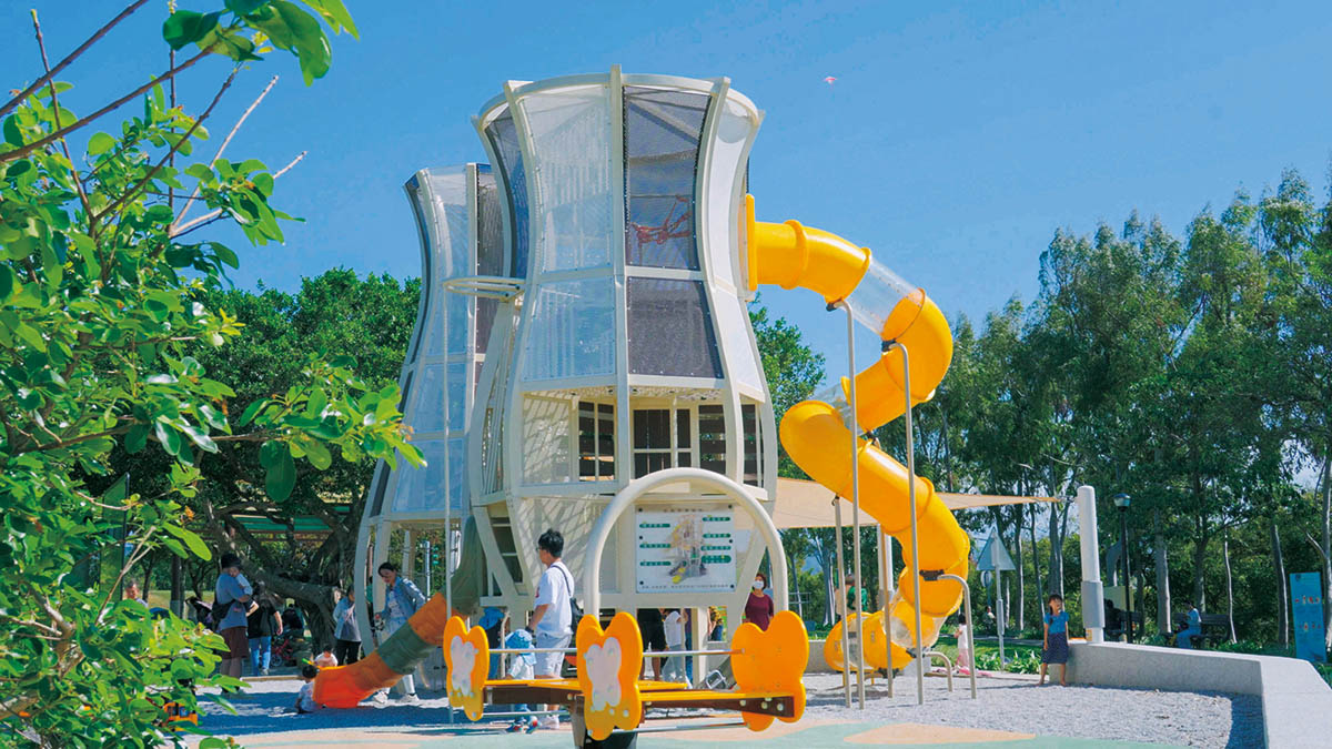 更有公園設計以感官體驗連結歷史為概念,比如中央公園「飛行美樂地遊戲場」呼應舊水湳機場歷史,以雙軌滑索與飛行主題遊具實現孩童的翱翔夢想,並設置輪椅旋轉盤落實遊戲平權;后里環保公園「孩籽世界共融遊戲場」,以環保、生態、交通學習為主軸,結合地形起伏、多元材質與創意設施,適合各年齡層及身心條件的兒童探索、遊玩;大里「瑞城公園」則將舊地名「大里杙」轉化為全台唯一的蜂巢主題遊戲組,引導孩童在攀爬中認識家鄉歷史。