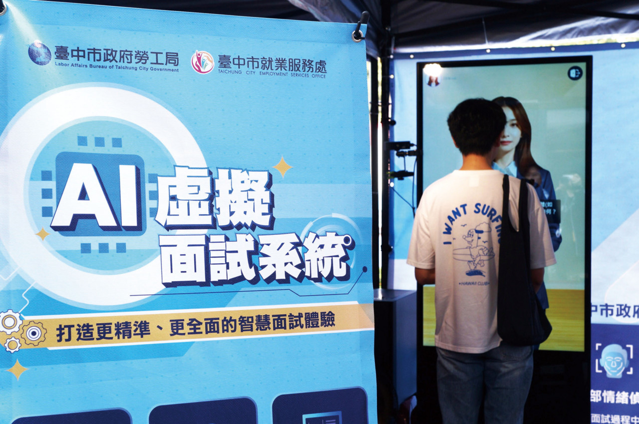 台中市就業服務處將AI虛擬面試系統導入校園,協助青年累積實戰經驗。