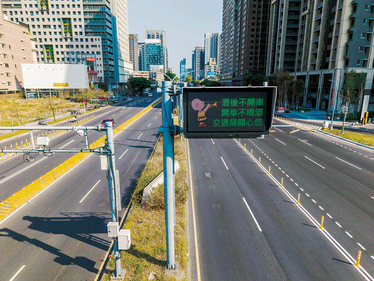 史努比還躍上資訊可變標誌(CMS),搭配「酒後不開車、開車不喝酒」等安全標語,提醒駕駛注意自身狀況與路況變化,在台灣大道、中清路、五權西路、崇德路、三豐路、環中路等交通要道,共設有18面,共同守護城市的交通安全。