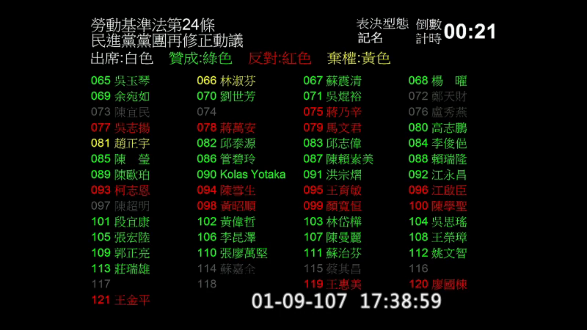 ▲當初勞基法第24條表決時,林淑芬與劉建國兩人皆選擇棄權。