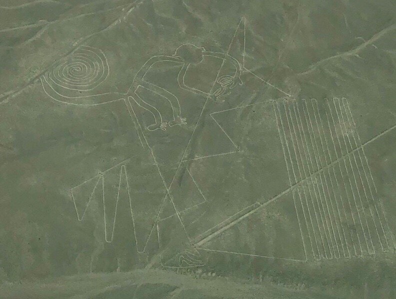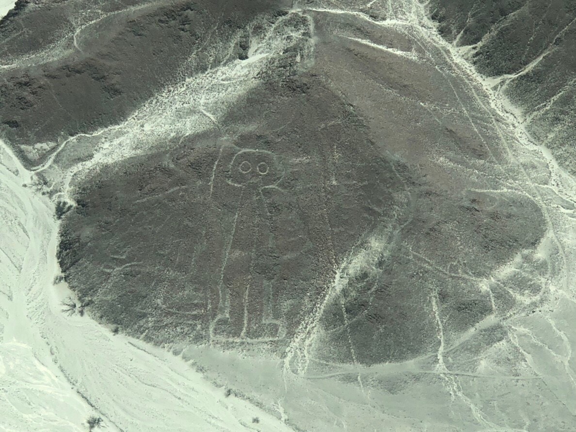 驚喜接踵而來,底下已是長達110公尺的「捲尾猴」,仔細看,它的左手有5個指頭、右手有4個指頭,尾巴是納斯卡線條中最知名的螺旋圖案。迄今,無人明白為何它的「指頭」分別是5和4。更神秘的是,捲尾猴是亞馬遜雨林裡的動物,距離納斯卡高原數千里遠,「為何納斯卡人會知道牠的存在?」這個疑問一直沒有解答。