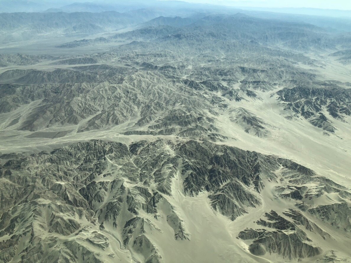 小飛機起飛後,從空中俯瞰大地,發現我們真的來到了沙漠,一座一座由沙堆起的小山坡就在腳下。
