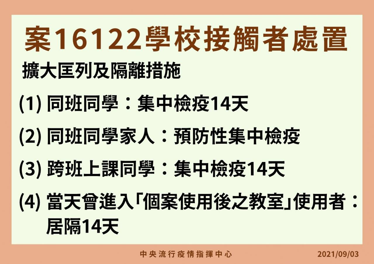 該違規機師的高職孩子也遭波及(案16122)確診,Ct值達11,病毒相當高,學校停課14天,2800多人檢疫,其中142人必須入住防疫所,其餘居家管理14天。