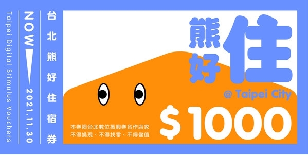 「台北熊好券」包含「住宿券」1,000元,有1張面額1,000元的票券,可以用在台北市的安心旅宿;「饗購券」500元,有5張面額100元的票券,台北市餐飲、零售商店都可消費;「藝文券」500元,有5張面額100元的票券,看電影、逛文創商店皆可使用;「運動券」500元,有5張面額100元的票券;「市集券」面額也是500元,5張面額100元的票券,可在各大夜市、市場、地下街折抵消費。