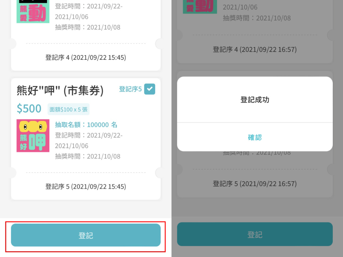 勾選完畢之後,拉至最下方點選「登記」,跳出「登記成功」畫面就完成囉!
