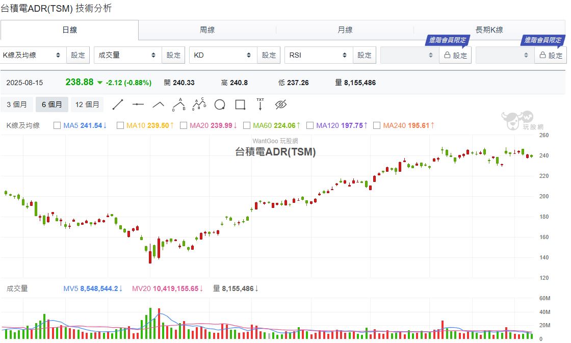 上次說台股航母,台積電ADR雖跌破月線,並失守前波大量支撐位241.39,但月線趨勢,仍與納斯達克指數同步維持上行,看似要進入整理格局。