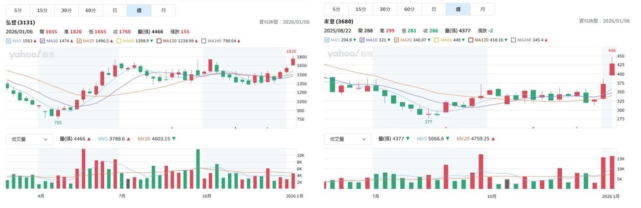反觀CoPoS技術,因能解決CoWoS的翹曲問題,並透過方形的面板封裝提高產出與良率,「以方代圓」成為台積電未來發展的重心。相關設備廠如:3131弘塑已切入CoPoS製程,近期獲得投信默默佈局,股價型態轉強。此外,曾獲台積電護航3680家登,近期也出現投信與外資同步買超的現象,顯示本土供應鏈正受到資金青睞。