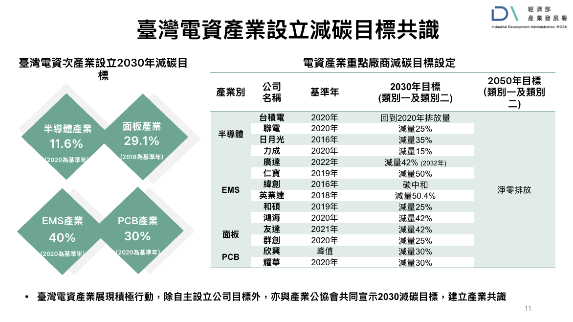 台灣電子資訊產業重點廠商減碳目標。圖片來源:產發署簡報