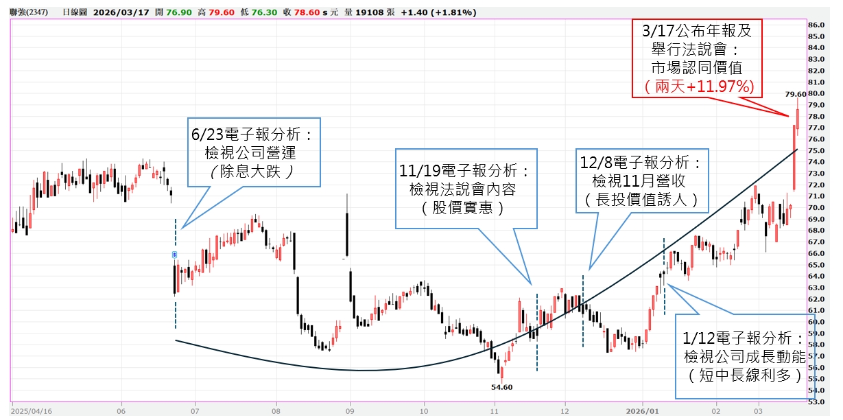 編按:本文原載於兩個月前(2026/1/12),當時股價64.2元,年漲幅約10.9%。本周聯強隨著年報公布及法說會的舉行,股價兩天內大漲約12%,股價來到78.6元,全年漲幅35.7%。重溫此文,希望能讓讀者體會,投資若能回歸並專注於「公司營運獲利本質」,在市場冷清時保持耐心,終能見證價值浮現。這也是我們堅持「股利為主,價差隨緣」的最佳註解。