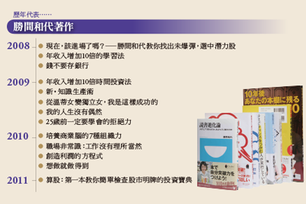 最近逛過日本書店的人,應該都會對「勝間和代」這個名字印象深刻,因為迄今她出了13本書(不含合著和譯書),而且因為詢問者太多,書店都設專區擺她的書。講座只要主講者有勝間和代這個名字,就會讓會場座無虛席。