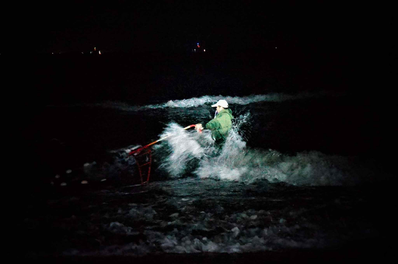 「鰻苗是海上期貨!」她透露,價格從一尾200元到10元不等,吸引漁民、移工甚至原住民季節性遷徙至宜蘭「淘鰻」。但高風險與高報酬並存:捕鰻人需在月黑風高的冬夜走入浪中,頸纏毛巾防溺,工具重達數十斤,還得面對突如其來的瘋狗浪。