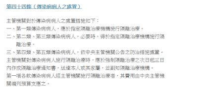 所以囉,請對照分類與法規的類別,再去看清楚是否符合強制隔離的要件,當然如果不清楚的話,請打電話去疾病管制署了解清楚。