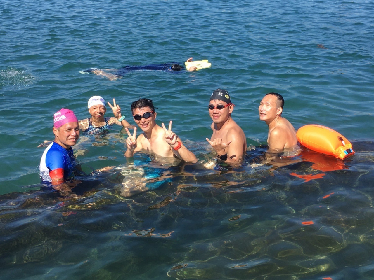 ▲洪國展(右一)2022年成功挑戰泳渡日月潭(圖:洪國展提供)
