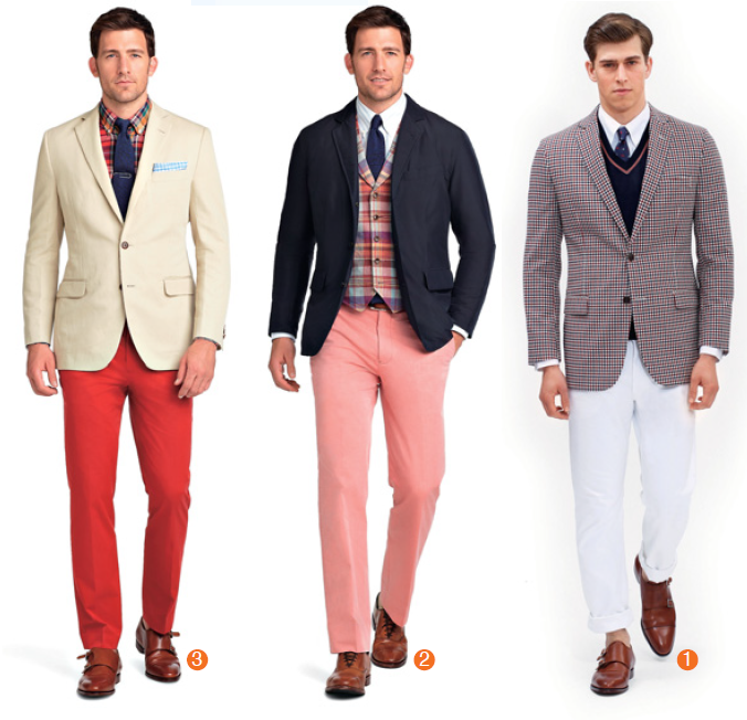 如此自由心證的穿搭,流行專家建議男士,先定調某一單品主色,也許是獵裝外套上最明顯易見的條紋色系,或是大膽選擇一條鮮豔的褲子,或外套、褲子顏色放淡,讓色彩斑斕的襯衫做主,再畫龍點睛以同色系的鞋子呼應,穿著亮點就出現了。