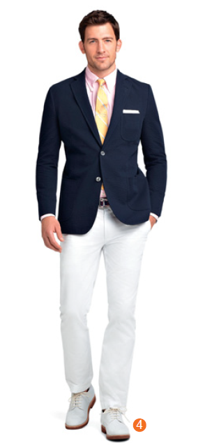 4. Brooks Brothers Seersucker泡泡布獵裝外套,粉紅襯衫與