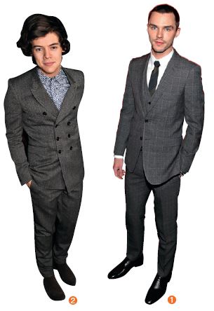 看來,他們都在西裝布料挑選上下足工夫。英國歌手哈利.史泰爾斯(Harry Styles)參加全英音樂季,便以一襲細密的灰色系印花襯衫,巧妙為整件灰色套裝增添柔和氣息,腳上捨正式紳士皮鞋,率性的腳踝靴也為整體穿著帶來年輕帥氣;小平頭、小蓄鬍的英國明星尼可拉斯.霍特(Nicholas Hoult),參加電影首映會穿著一襲灰色格紋套裝,仔細看布料上錯落細緻的格線,正是整套灰階套裝層次分明的亮點。